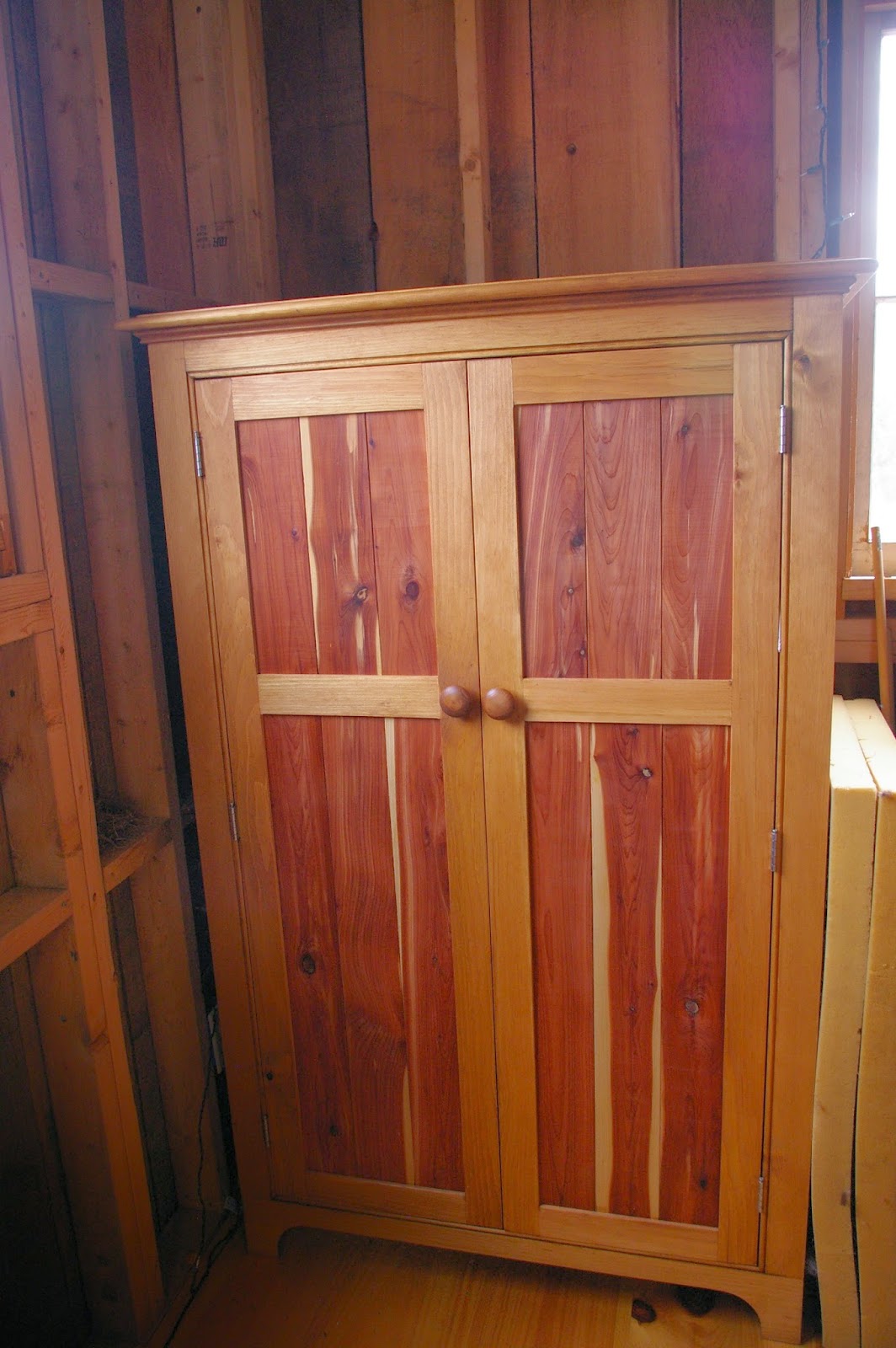 One of the things that allows me to be more organized is the beautiful new cabinet that John built for me. It is pine with cedar doors. The doors will help to keep the stink bugs out and the cedar will help with the moths. I have put the yarn from our sheep in the cabinet and balls of roving and rolled up batts from the Finns. It actually already has more in it than when I took the picture.